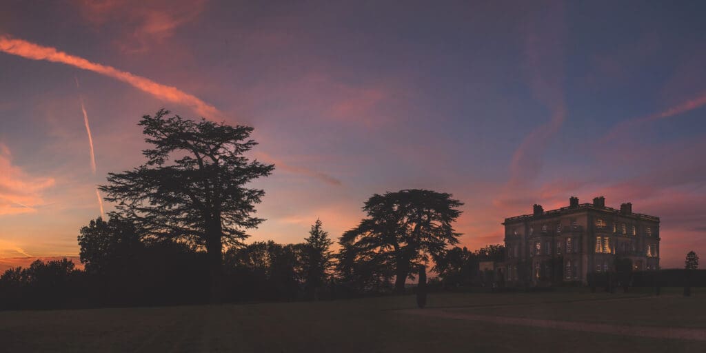 Ceremonies can take place in the domed Center Hall, and dinners in the Ballroom overlooking the grounds. Outdoors, the manicured lawns roll into open countryside. The views feel cinematic from every angle, which is why many couples choose to extend their celebrations into the gardens. For those who prefer a traditional service, the 12th-century St Nicholas’ Church sits just a short woodland walk away.